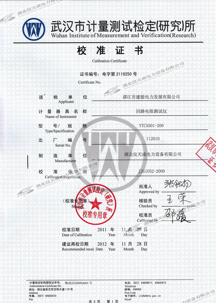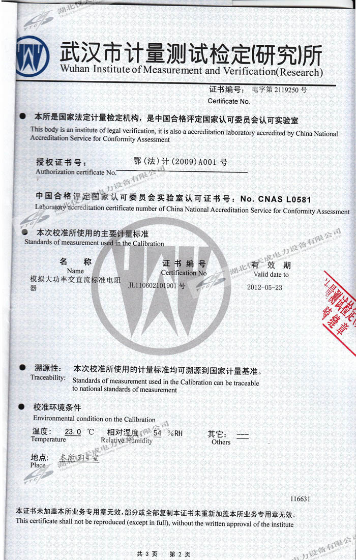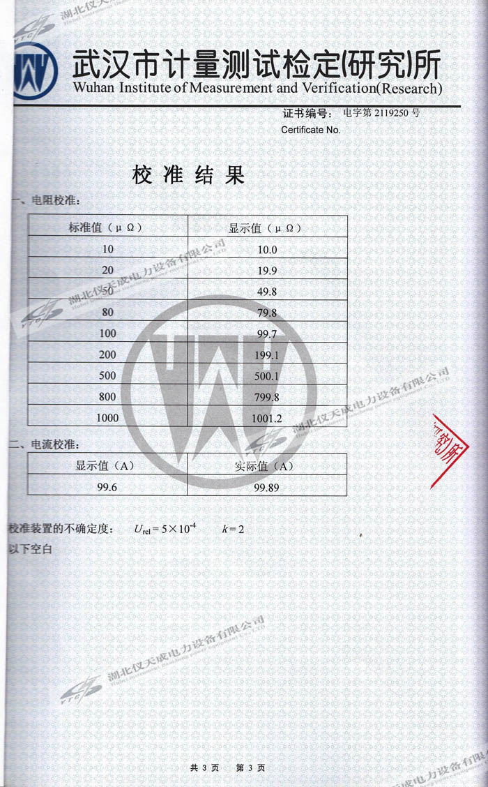 轉載:"YTC5501-200A回路電阻測試儀的資質(zhì)證書" 請注明來源于儀天成電力。 更多技術問題請致電儀天成電力客戶服務:027-87876585,技術部專線:027-87876585,在線客服:719388481